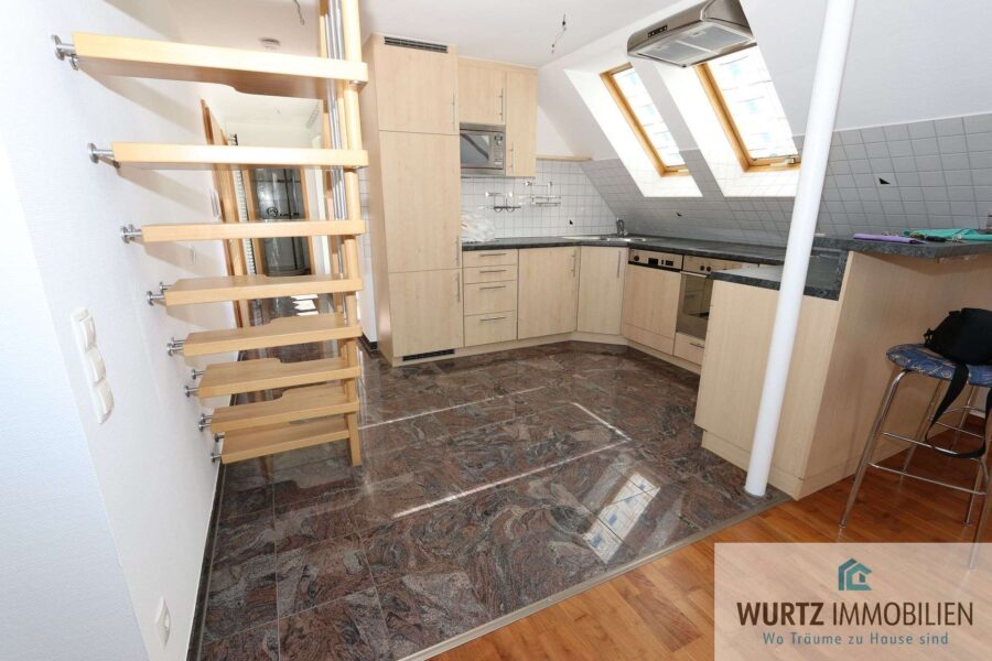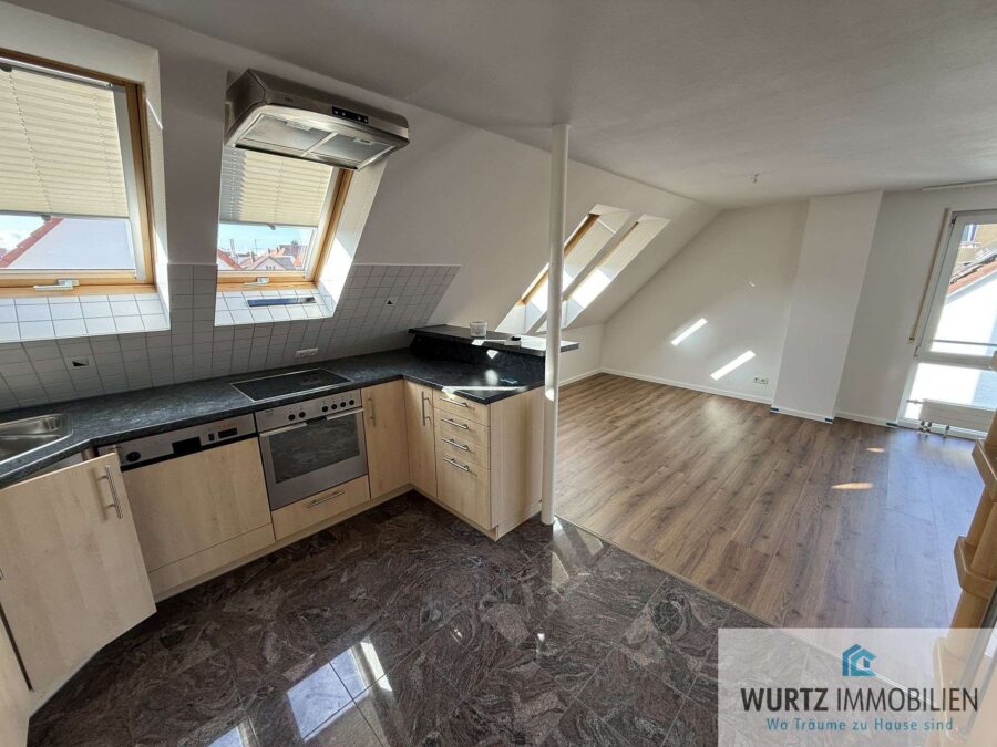 Diese gepflegte Dachgeschoss-Wohnung bietet einen herrlichen Blick über die Dächer von Rutesheim und liegt zentral im Ortskern in bester Lage.